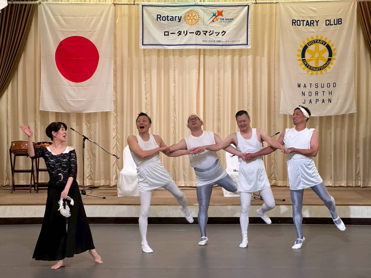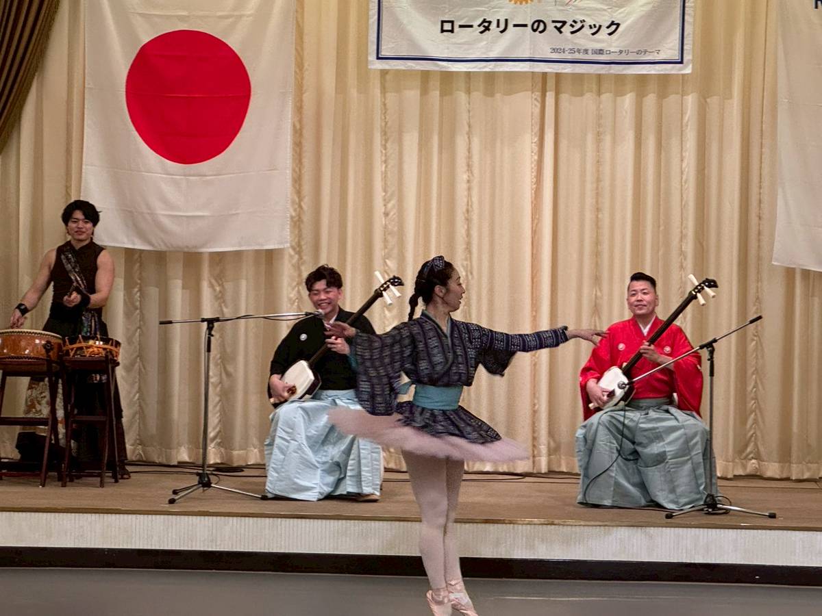 2024-25年度も残りあとわずか、最後の家族例会が盛大に開催されました。会長幹事引継ぎや大川由紀子会員率いるオーロラバレエ協力の元、津軽三味線、民謡、バレエのコラボショーの開催で大いに盛り上がりました。